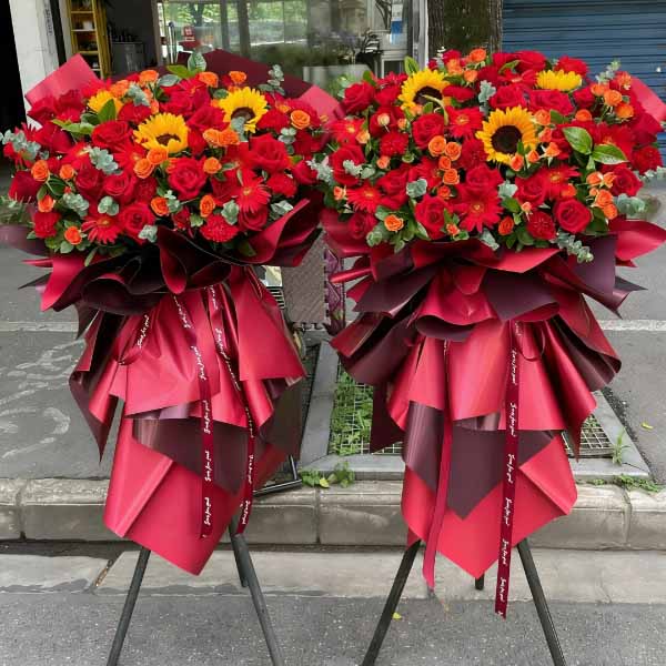 扶郎花朵的明亮和令人愉悦的颜色常用于开业花篮的设计中。扶郎有红色、橙色、粉色、黄色和粉色等多种颜色。选择扶郎这类花材将有利于办公室或商店,因为扶郎的花朵有清洁和净化空气的能力。